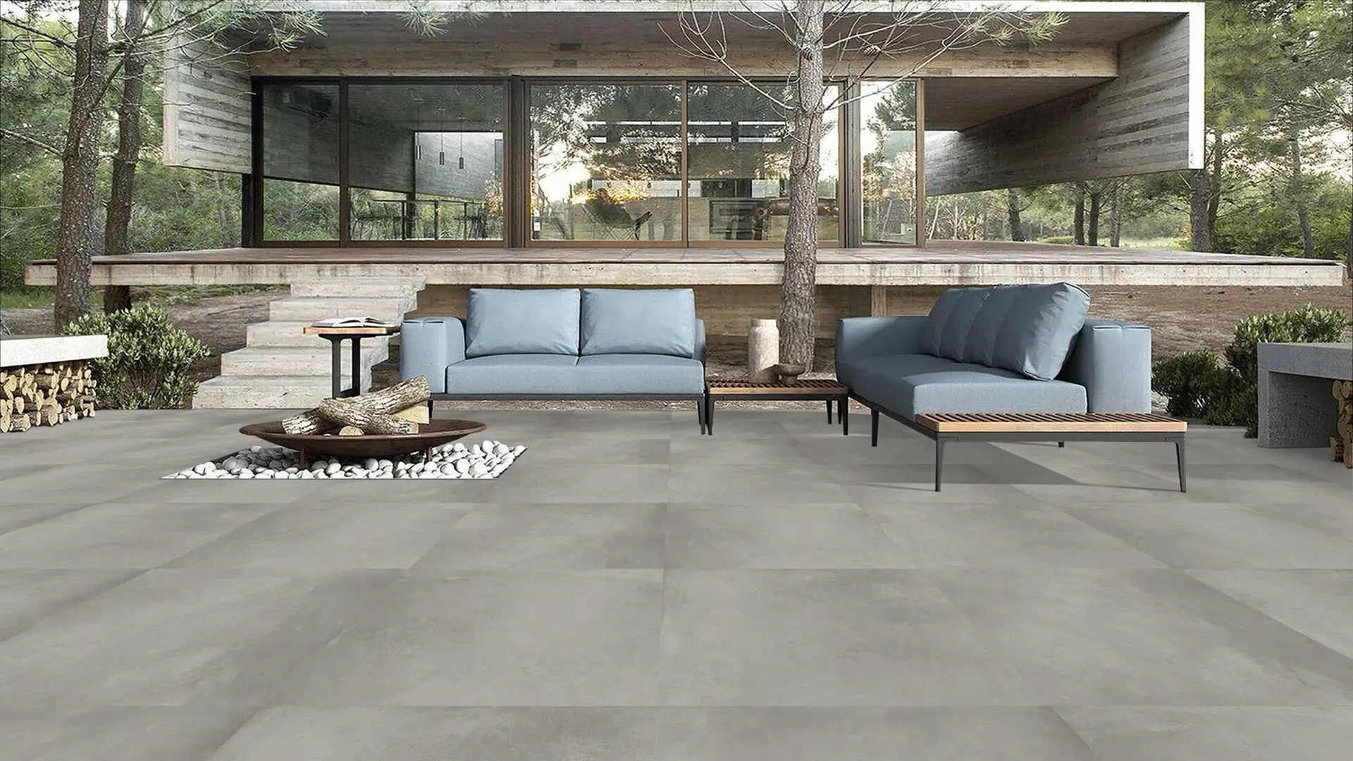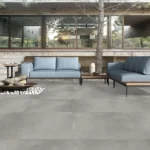 A light grey porcelain surface with subtle concrete texture, providing a clean, minimal aesthetic with soft visual depth.