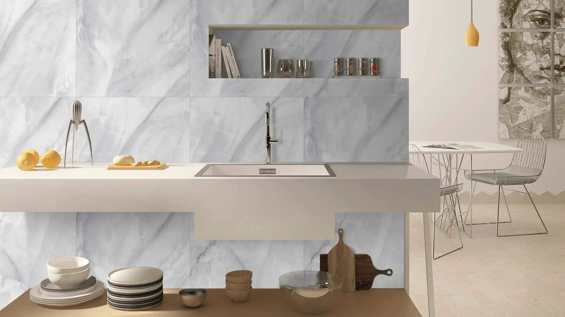 Grey stone inspired by agate, with layered tonal movement that delivers texture, depth, and a luxurious organic feel.