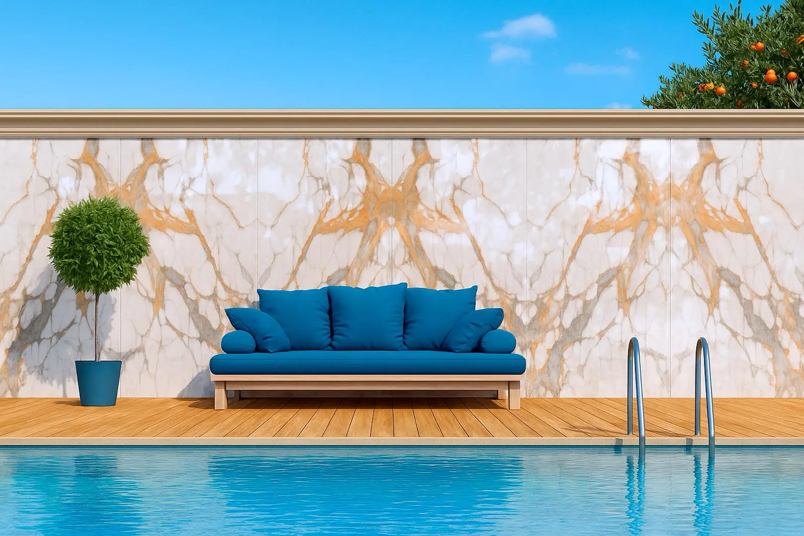 Absolutely. Our Porcelain Pavers and specific stone slabs are UV resistant and durable enough to withstand freezing and thawing cycles, making them perfect for patios, pool decks, and outdoor kitchens.