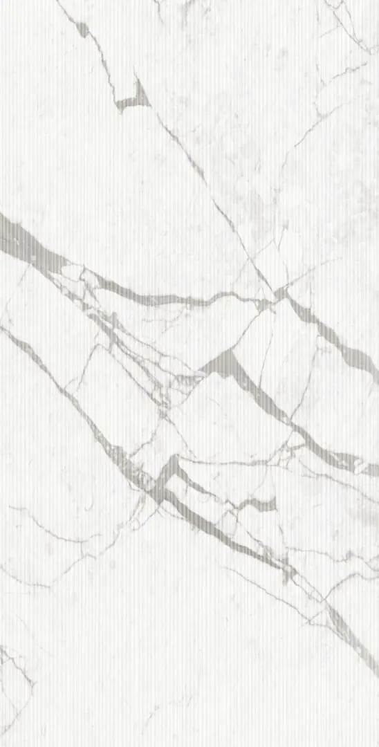 An iconic white marble look with subtle grey veining, delivering a universally elegant and flexible aesthetic for both residential and commercial spaces.