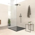 Crisp white porcelain tile with subtle grey detailing. Its clean, modern finish enhances any space, offering durability and timeless appeal for walls and floors.