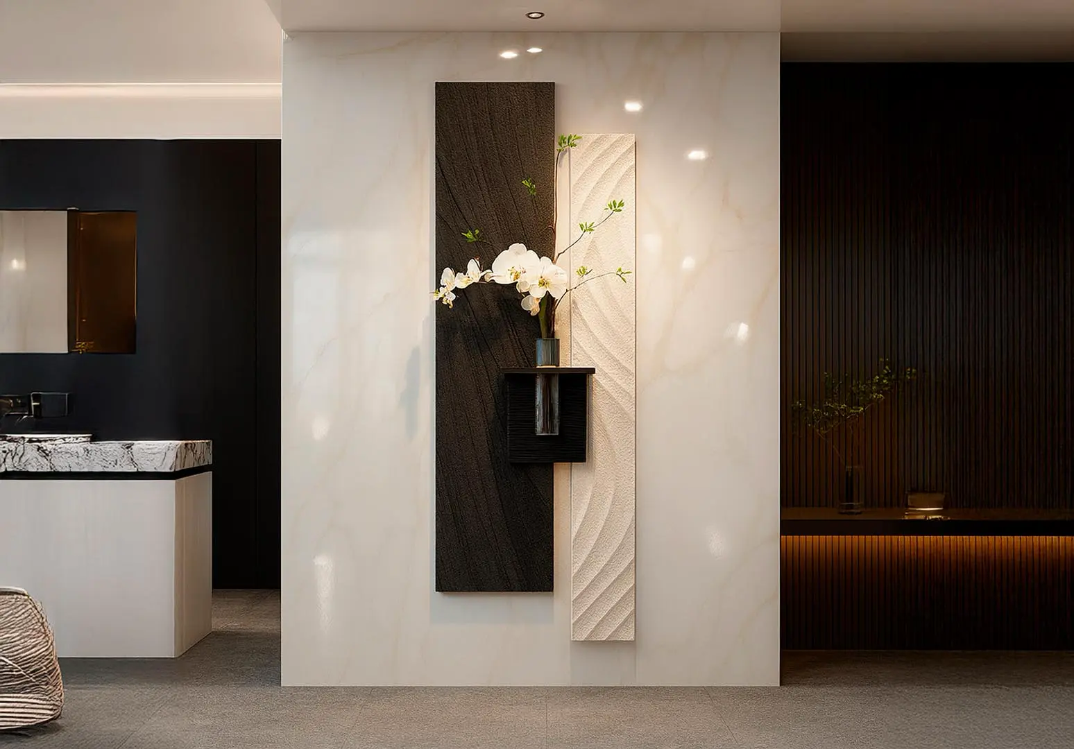 A clean white marble look with soft, classic veining—a timeless, elegant option for sophisticated environments.