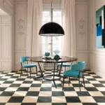 Bold black porcelain tile with refined grey highlights. Its dramatic tone adds depth and sophistication, ideal for modern feature floors or striking wall applications.