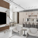 Patagonia Gold features dramatic white stone fragments blended with warm gold and grey tones, creating a bold, artistic surface ideal for luxury floors, walls, and statement interiors.