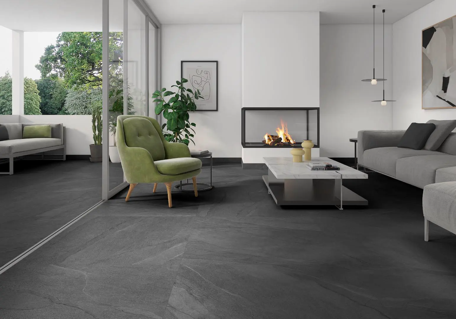 A cool grey stone pattern with smooth, consistent texture, offering understated elegance for contemporary spaces.