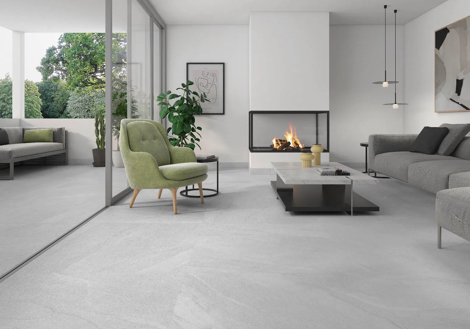 A clean white stone look with subtle mineral nuance—fresh, adaptable, and ideal for modern interiors.
