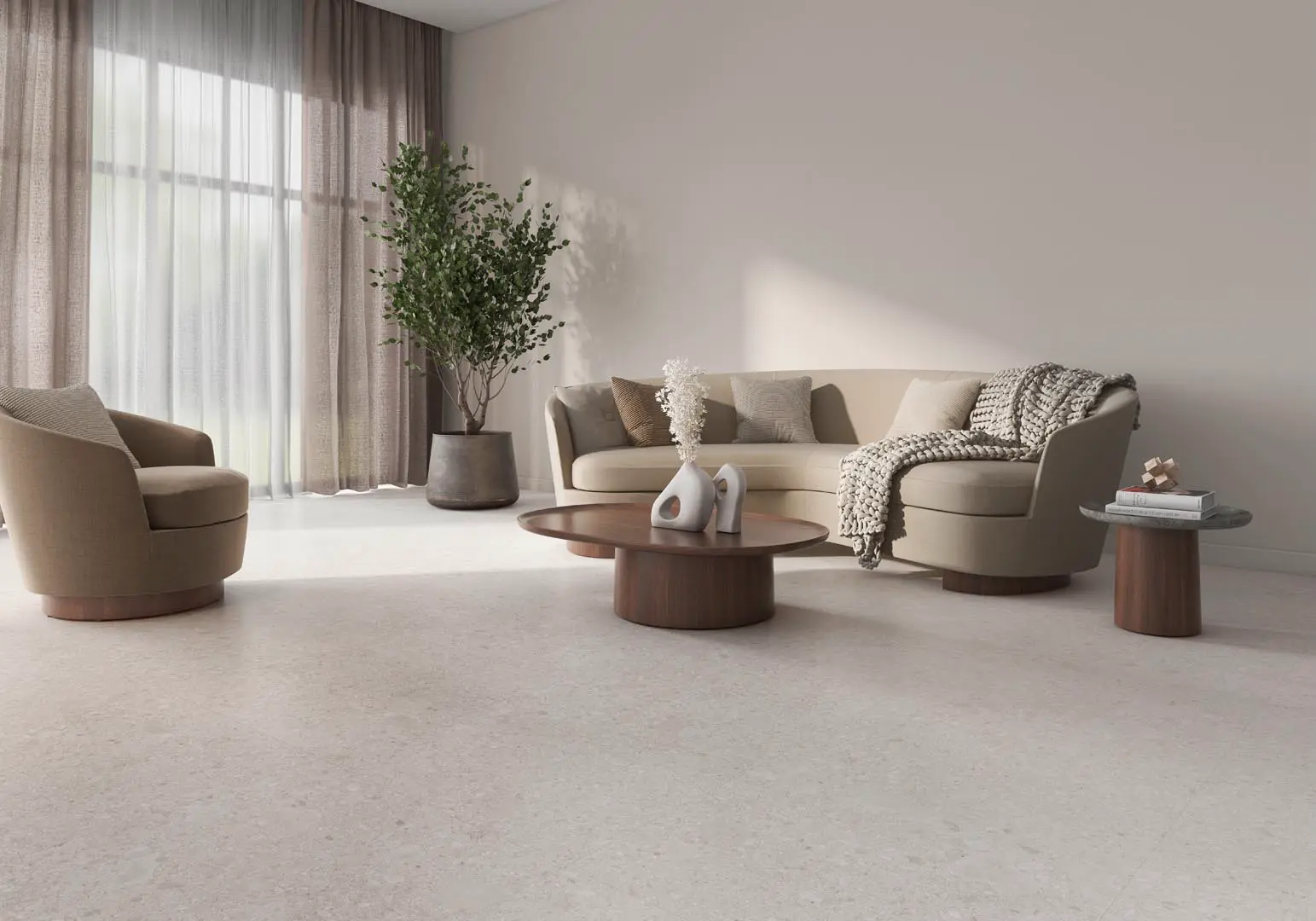 A beige-toned terrazzo with light, warm fragments that create soft texture—perfect for Mediterranean, modern, or neutral design schemes.