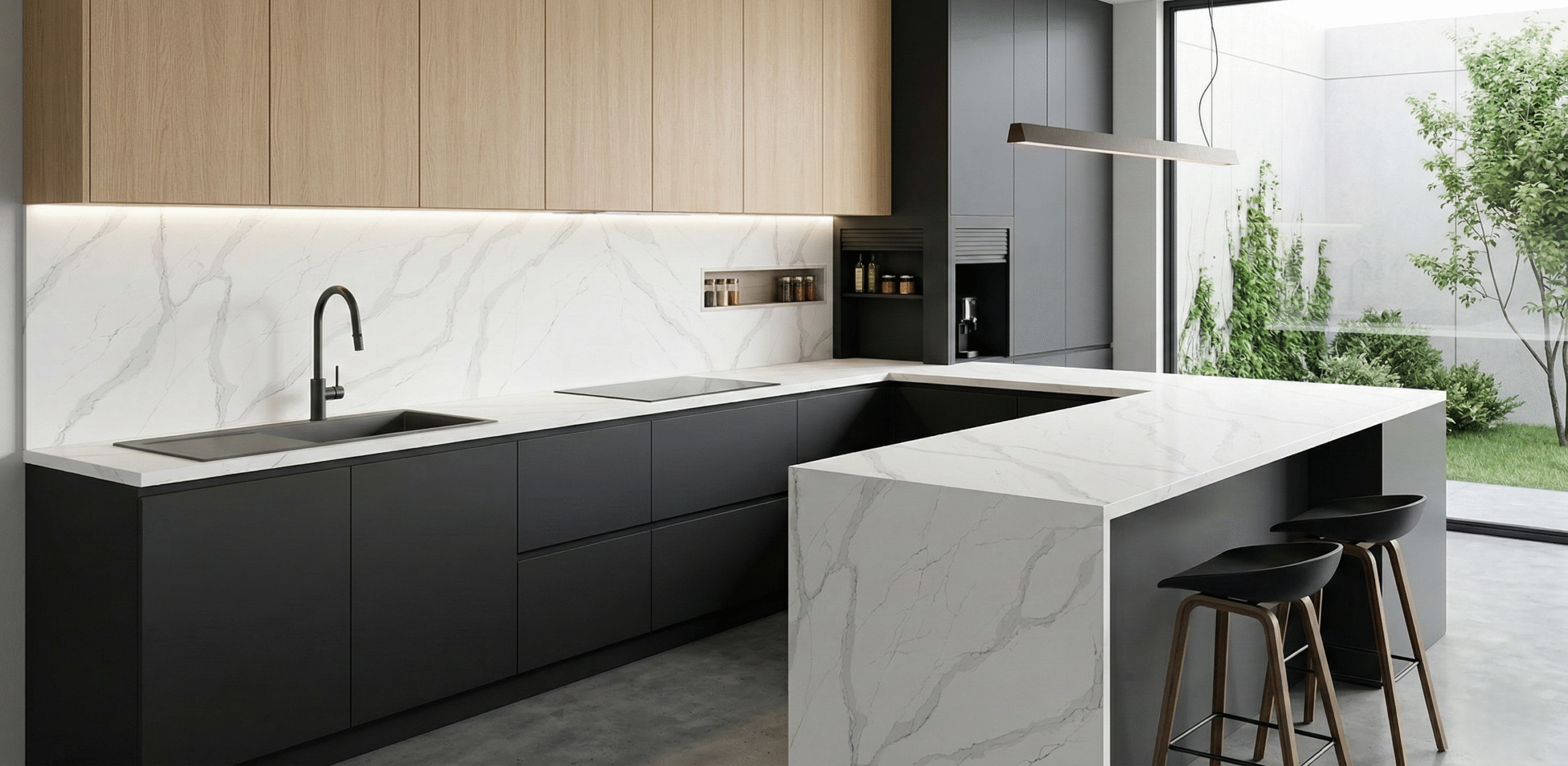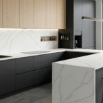 CALACATTA LUO is a durable quartz surface with a refined look, ideal for kitchens, bathrooms, and high‑traffic spaces.