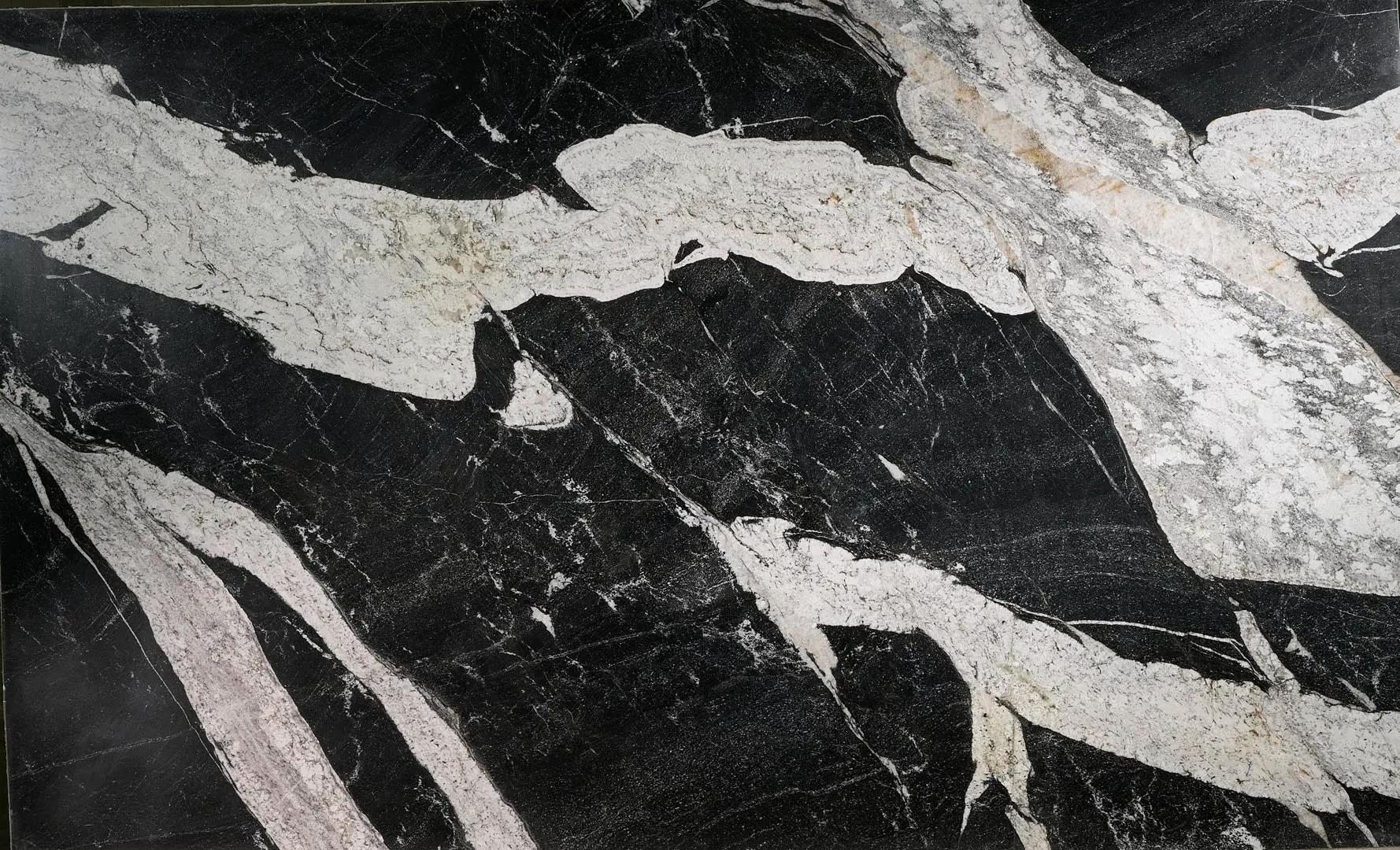 MAORI BLACK is a natural quartzite featuring distinctive veining and organic stone movement.