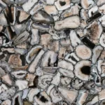 A bold black agate stone surface with striking mineral contrast, designed to add depth and expressive character.