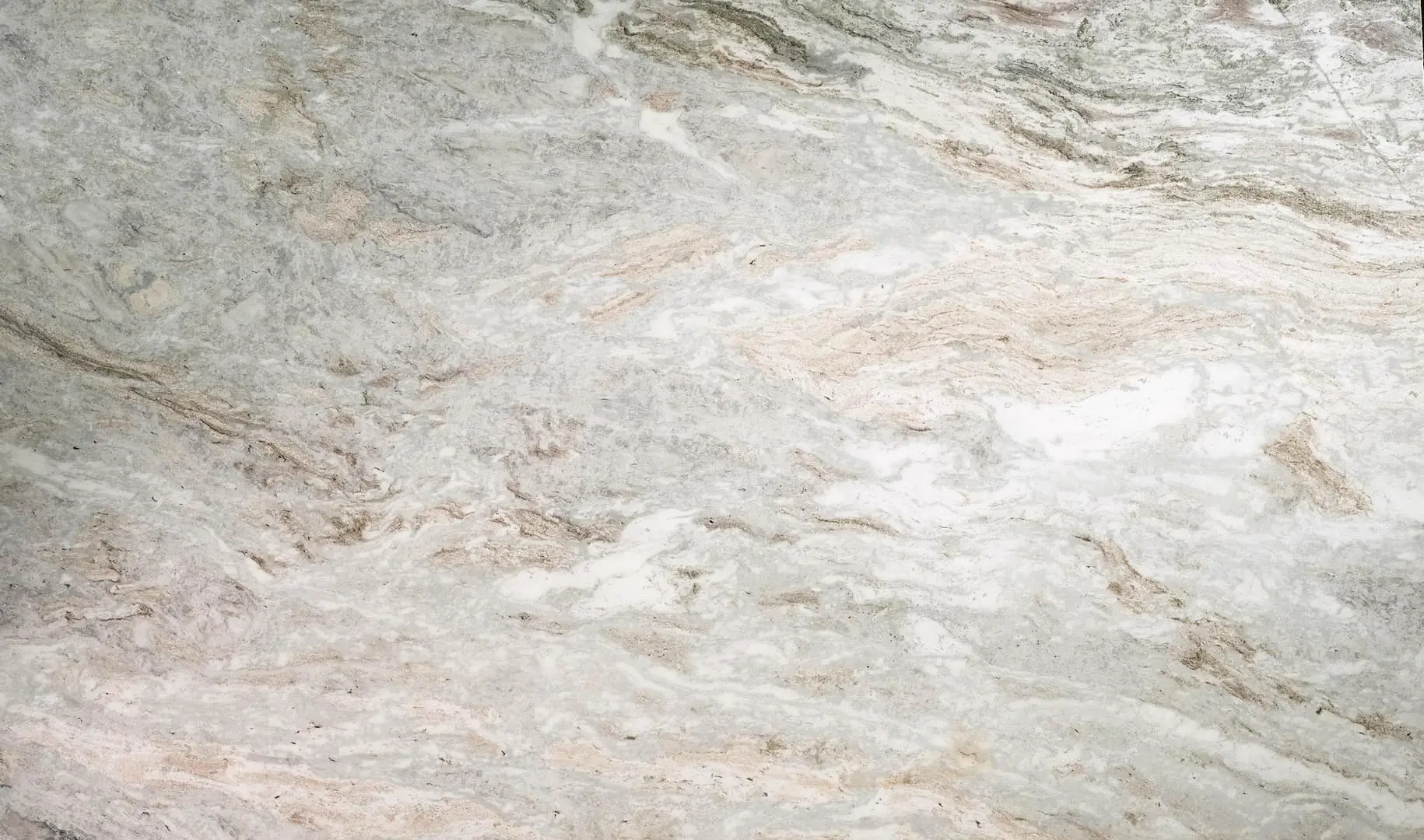 PRATO WHITE is a natural quartzite featuring distinctive veining and organic stone movement.