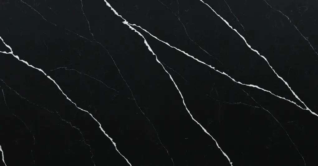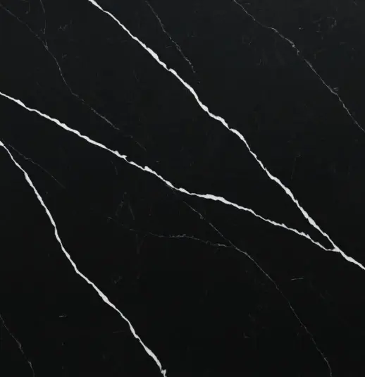 Calacatta Nero is a durable quartz surface with a refined look, ideal for kitchens, bathrooms, and high‑traffic spaces.