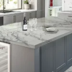 CALACATTA SIENA is a durable quartz surface with a refined look, ideal for kitchens, bathrooms, and high‑traffic spaces.