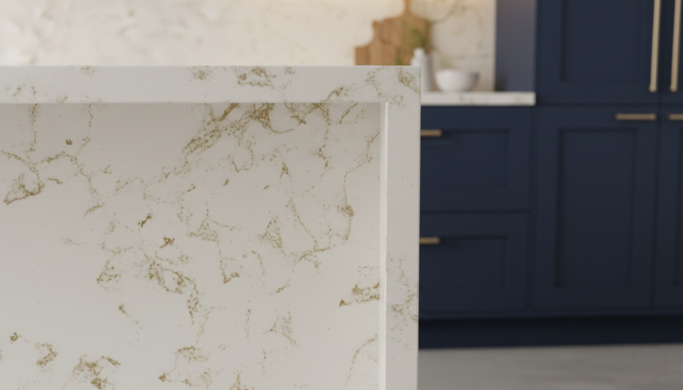 CARRARA GOLD is a durable quartz surface with a refined look, ideal for kitchens, bathrooms, and high‑traffic spaces.