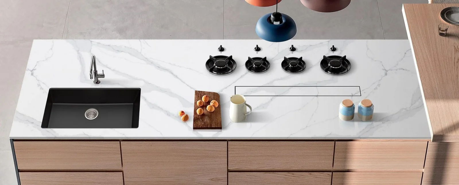 Yes. Our porcelain slabs are fired at high temperatures, making them extremely resistant to heat. While quartz is also durable, we recommend using trivets or hot pads to protect the resin component from thermal shock.