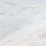 A luminous white marble surface with soft blue and grey veining, offering a light, elegant aesthetic with gentle natural movement.