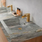 SANTORINI is a natural quartzite featuring distinctive veining and organic stone movement.